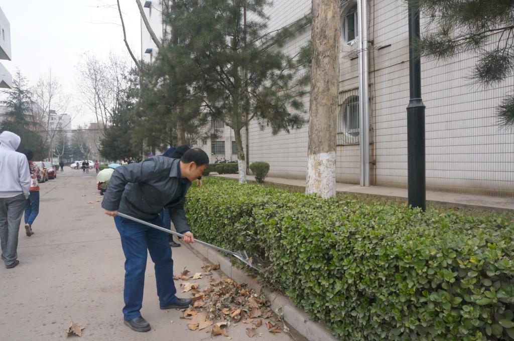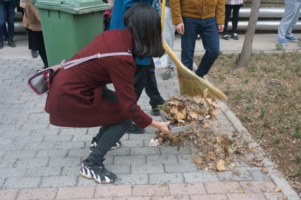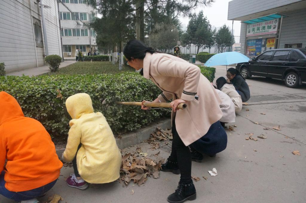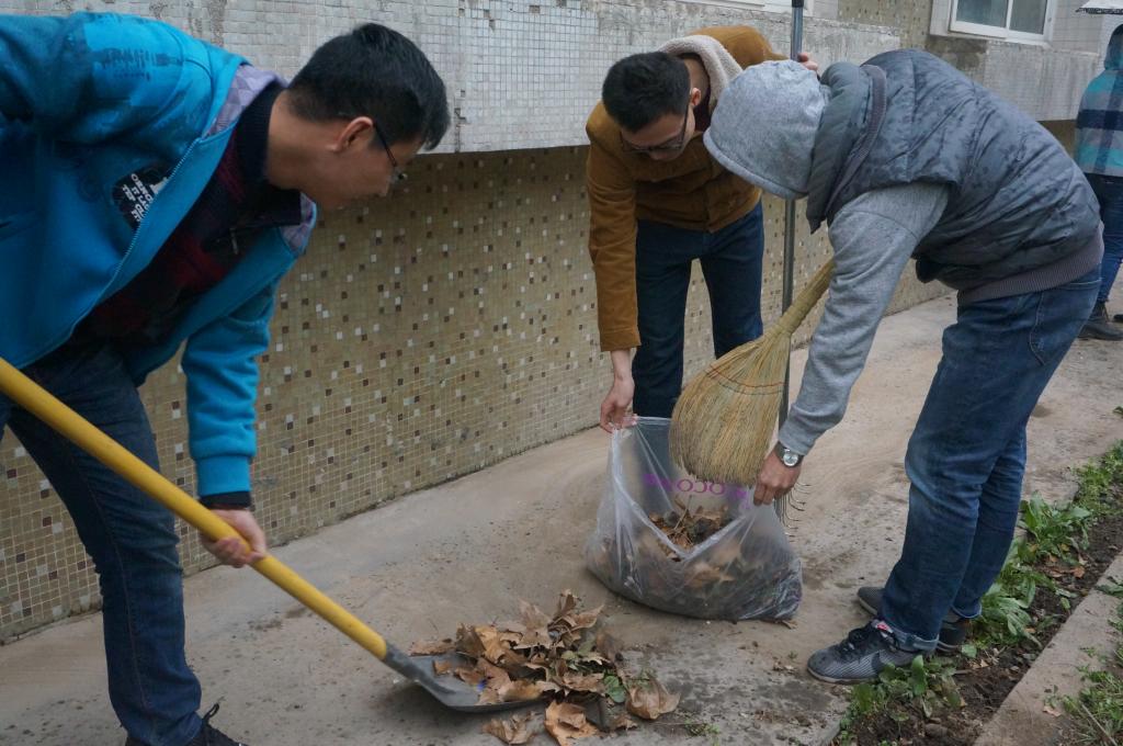 3月4日中午12点30分, 同学们来到了U型楼公寓及财4号楼的周边区域开始了大清扫。天空突然下起了毛毛细雨,但同学们和老师仍然本着“不怕脏、不怕苦”的精神,在细雨中劳动。
