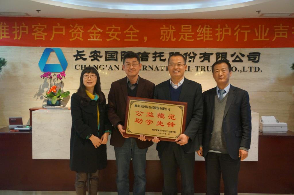 全体师生向长安信托全体员工热心公益的高风亮节表达感谢之情!并建议双方在学术交流、联合培养、社会实践等多方面展开更多的合作和互动;并激励校友们为公司的发展更加努力工作、做出更大的贡献,为母校争光。