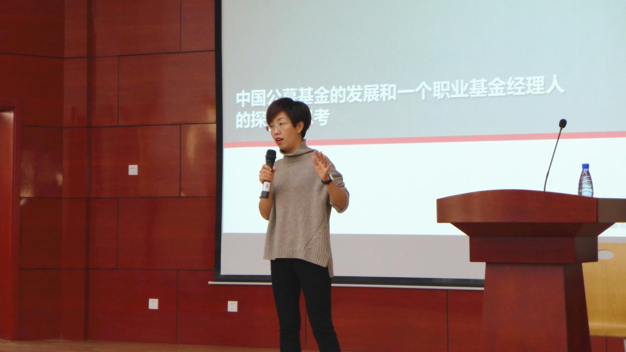 她用生动流畅的语言讲述了自己从一个初出茅庐的学生成长为一名优秀基金经理的探索过程和心路历程。她把晦涩难懂的理论、枯燥死板的数字用一种鲜活、立体而又清新的方式呈现给听众,她所经历的成功、喜悦、挫折、迷茫都给听众带来非同一般的感受。正如一位学弟感慨:“原来一名基金经理人的素质太综合了,宏观分析、交易操作技能、口才全部都要具备啊!”