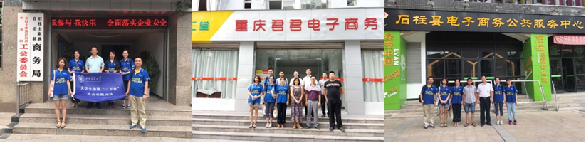 团工委书记王平老师带领下赴重庆调研。拜访重庆市商务委、石柱土家族自治县、忠县等地区政府部门、企事业单位、电商服务站点,同干部职工座谈,深入基层中开展调研活动,为渝东农村地区电子商务发展尽智添力,助力渝东地区脱贫攻坚。