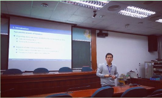 戴小勇老师做了题为“Disentangling the effects of endogenous export and innovation on the performance of Chinese manufacturing firms”的报告。“中央研究院”的游雅婷老师对报告内容提出了诸多建设性意见,戴小勇老师针对与会学者提出的问题逐一回复。研讨会在“中央研究院”的精心安排与参会学者的积极互动下取得圆满成功。