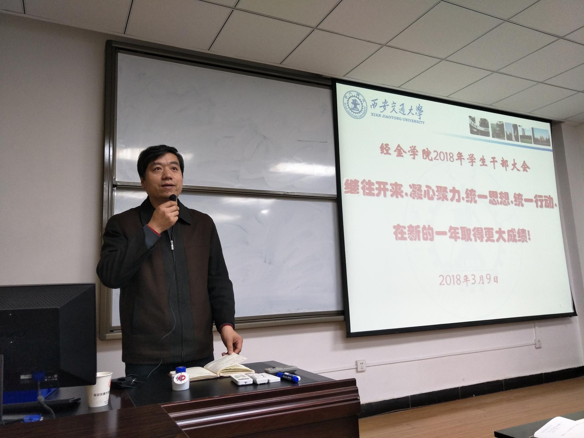 接下来,王平老师对全体学生干部提出了几点要求和希望,一是提高思想觉悟。学生干部应加强政治学习,关心时事政治和学校工作的部署和要求,学会从学校的角度思考问题,把自己的思想自觉向上级组织靠拢。与交大同命运、共呼吸,真正作为学生的代表和榜样。二是要增强责任意识。学生干部是学校各项活动的组织者、实施者和参与者,学生干部要勇于承担责任,明确自己的干部身份,把自己的行动充分协调统一到上级组织的行动和号召中,围绕学校中心工作组织开展各项活动,同时要积极参加学校组织的各项活动。三是要有奉献精神。学生干部要具有奉献精神,牢记集体主义大于个人主义,把学校集体利益荣誉摆在前面,坚定理想和信念,才能出色完成各项工作和任务。