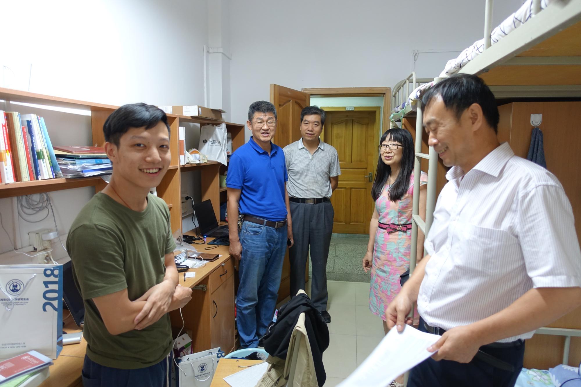 党委书记宋丽颖、院长孙早、院党委副书记周建伦及辅导员王平老师对研究生新生宿舍进行走访慰问,送去殷殷关怀之情。