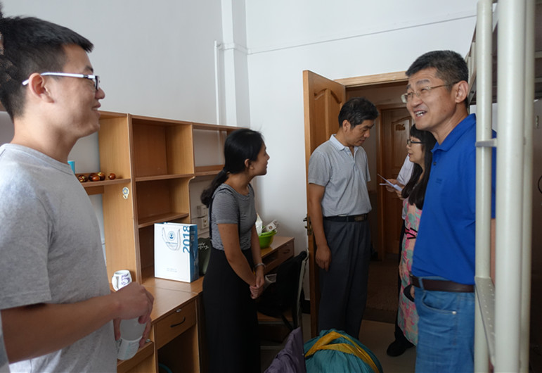 在学生宿舍,院领导和同学们拉起家常,亲切地询问同学们来自哪里、所学专业、导师是谁等情况,关心同学们的饮食起居,希望同学们要适应研究生生活,互帮互助,并叮嘱大家要注意天气变化,注意身体健康,共同创建文明和谐校园。新生们深受感动,纷纷表示要努力学好知识,做好科研,积极参加活动,不断提升自己。