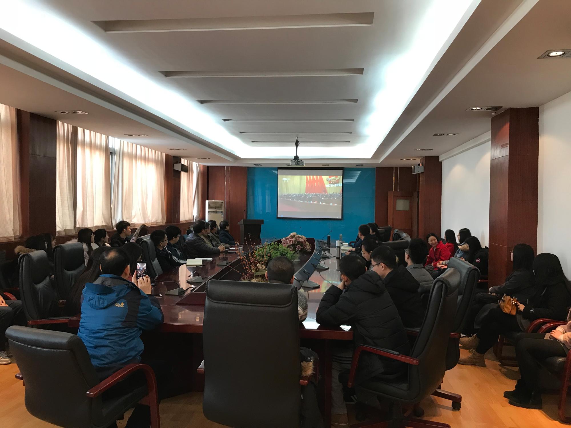 领导班子、教工支部书记、青年教师代表和学生代表一起集体收看庆祝改革开放40周年大会实况。