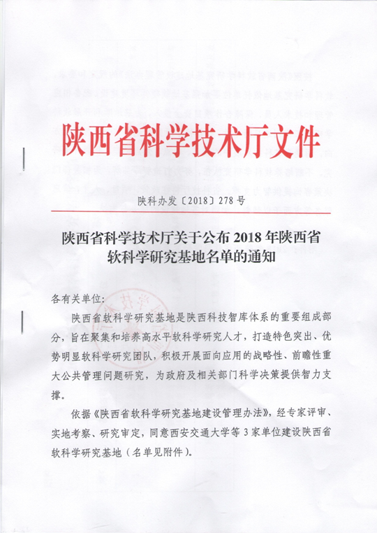 12月10日,陕西省科技厅下发了《陕西省科学技术厅关于公布2018年陕西省软科学研究基地名单的通知》(陕科办发〔2018〕278号),经金老虎游戏机