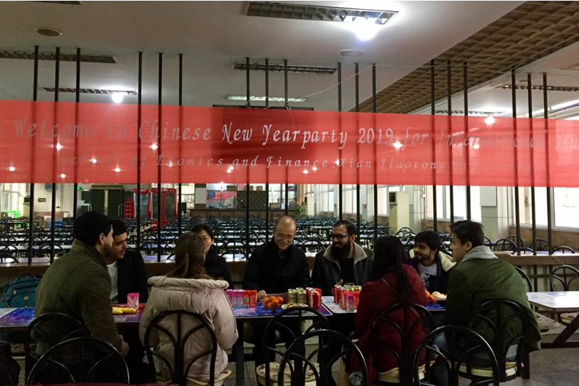 文艺活动之后,清真餐厅为留学生们准备了丰盛的晚餐,同学们边吃边交谈,甚是快乐。