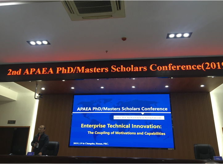 温军教授作为亚太应用经济学会秘书长,在开幕式上做了题为“Enterprise Technical Innovation: the coupling of motivations and capabilities”的英文主旨演讲,受到与会学者的热烈好评。来自我院的Junaid Waheed、Hussain Hadi、郑明波等9名博士研究生在分论坛进行了论文报告,其中郑明波学生撰写的论文获此时研究会的优秀论文奖。与会学者围绕应用经济学领域的宏观经济理论与实践研究、区域经济发展研究、资源环境与绿色发展研究、产业经济发展等问题进行了分组研讨和论文交流。
