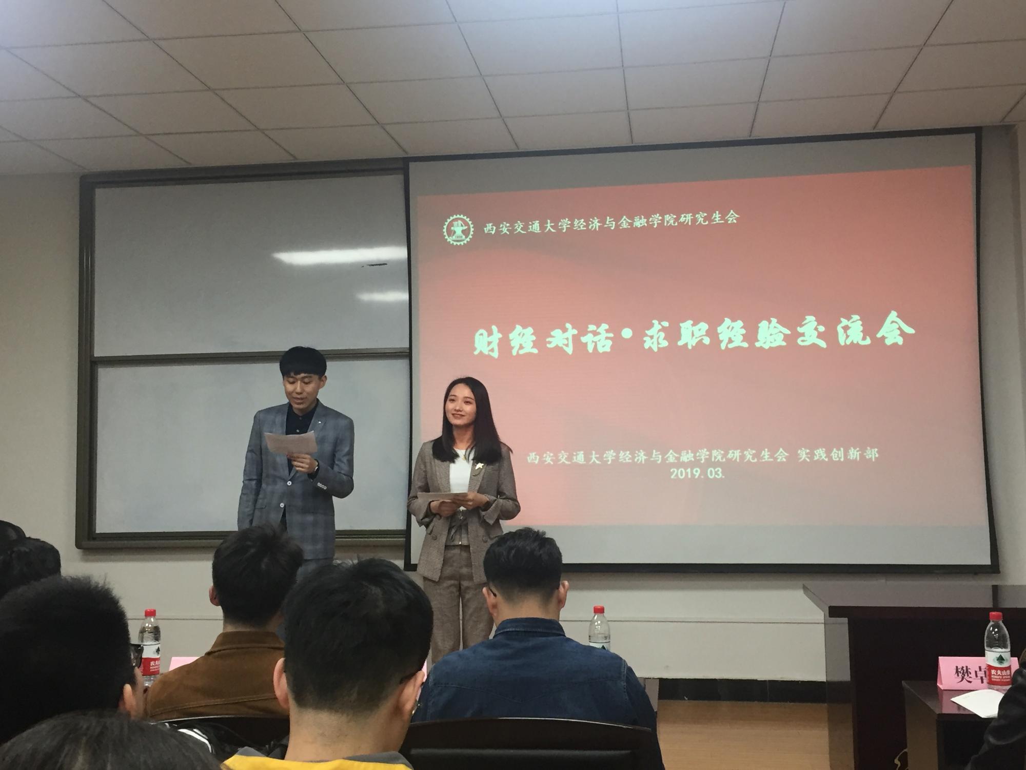 研究生会成功举办了求职经验交流分享会。本次交流会邀请了汪伦(2017级产业经济学)、吴博(2017级 金融专硕)、景高琦(2016级金融学硕)、樊卓群(2016级 金融学学硕)及雷蕾(2016级电子商务)等5位我院优秀学生,分享了他们在实习、求职、offer选择等方面的经历经验,并就同学们提出的问题进行了交流。