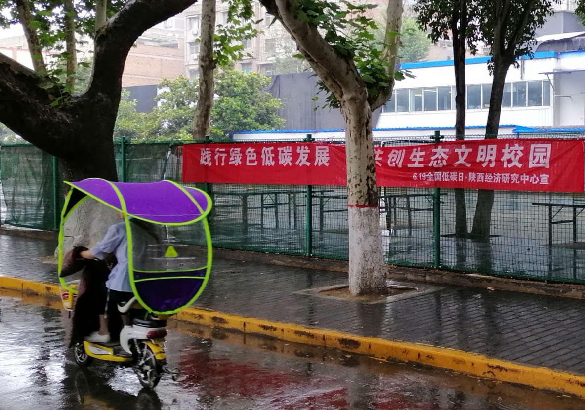 全国低碳日宣传教育活动开展得扎实广泛。以中华人民共和国生态环境部和陕西省生态环境厅提供的2019年“全国低碳日”宣传材料为主体,在校园餐厅、学生宿舍、教学主楼等处的公共宣传栏张贴“全国低碳日”宣传海报,共张贴20余处,吸引广大师生关注低碳校园创建工作,自觉从我做起,树立低碳绿色生活理念,打赢蓝天保卫战。紧密联系2019年“全国低碳日”宣传主题,突出低碳校园创建特色,设计并制作了“携手节能低碳、共建碧水蓝天”,“践行绿色低碳发展、共创生态文明校园”、“关心环保、呵护绿色、从我做起”等“全国低碳日”宣传横幅,并在校园主人行道、教学主楼前悬挂,提高师生注重环保、呵护绿色、节能减排的意识和能力。