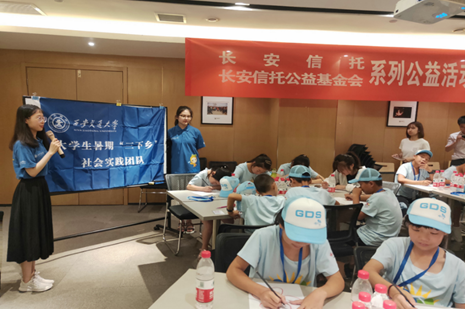 除此之外,实践团队联系到长安信托公益基金会为来西安市参加夏令营的小朋友举办“垃圾分类——你我共行动”的专题讲座。队员们通过丰富活泼的小游戏,结合精心制作的PPT与趣味小视频,为小朋友们深入讲解了垃圾不当处理的危害、垃圾分类现状、垃圾分类基础知识及垃圾分类的重要性和必要性并引导小朋友们思考应当如何采取实际行动践行垃圾分类。
