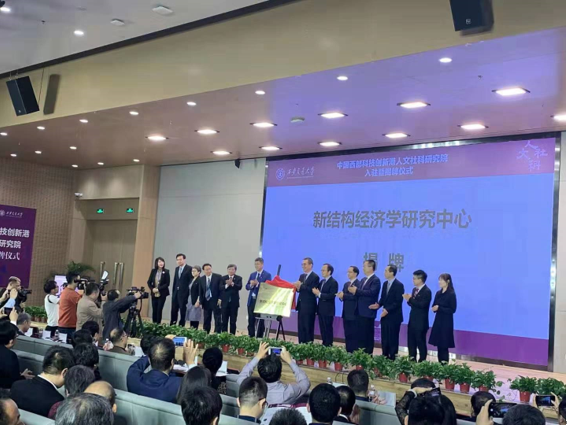 2019年9月18日下午,西安交通大学“中国西部科技创新港人文社科研究院入驻暨揭牌仪式”在创新港涵英楼新港报告厅隆重举行。校党委书记张迈曾、校长王树国等校领导与各界嘉宾共同见证了人文社科各研究院和科研合作基地(中心)的揭牌典礼。著名经济学家、世界银行前高级副行长兼首席经济学家、北京大学新结构经济学研究院院长林毅夫教授,杰出校友、榆林市人民政府市长李春临,杰出校友、兴业银行首席经济学家鲁政委等嘉宾受邀,与校领导和有关部门负责人一道为“新结构经济学研究中心”揭牌。在揭牌仪式上,经济金融研究院院长孙早代表研究院与浙江核新同花顺公司执行总裁董事副总经理吴强、西安大东国际数据股份有限公司董事长董静平分别签订了合作协议。揭牌和签约仪式的举行标志着经济金融研究院正式入驻创新港,研究院与北京大学、同花顺网络信息股份有限公司等知名大学和科技型企业的学术合作掀开了崭新的一页。