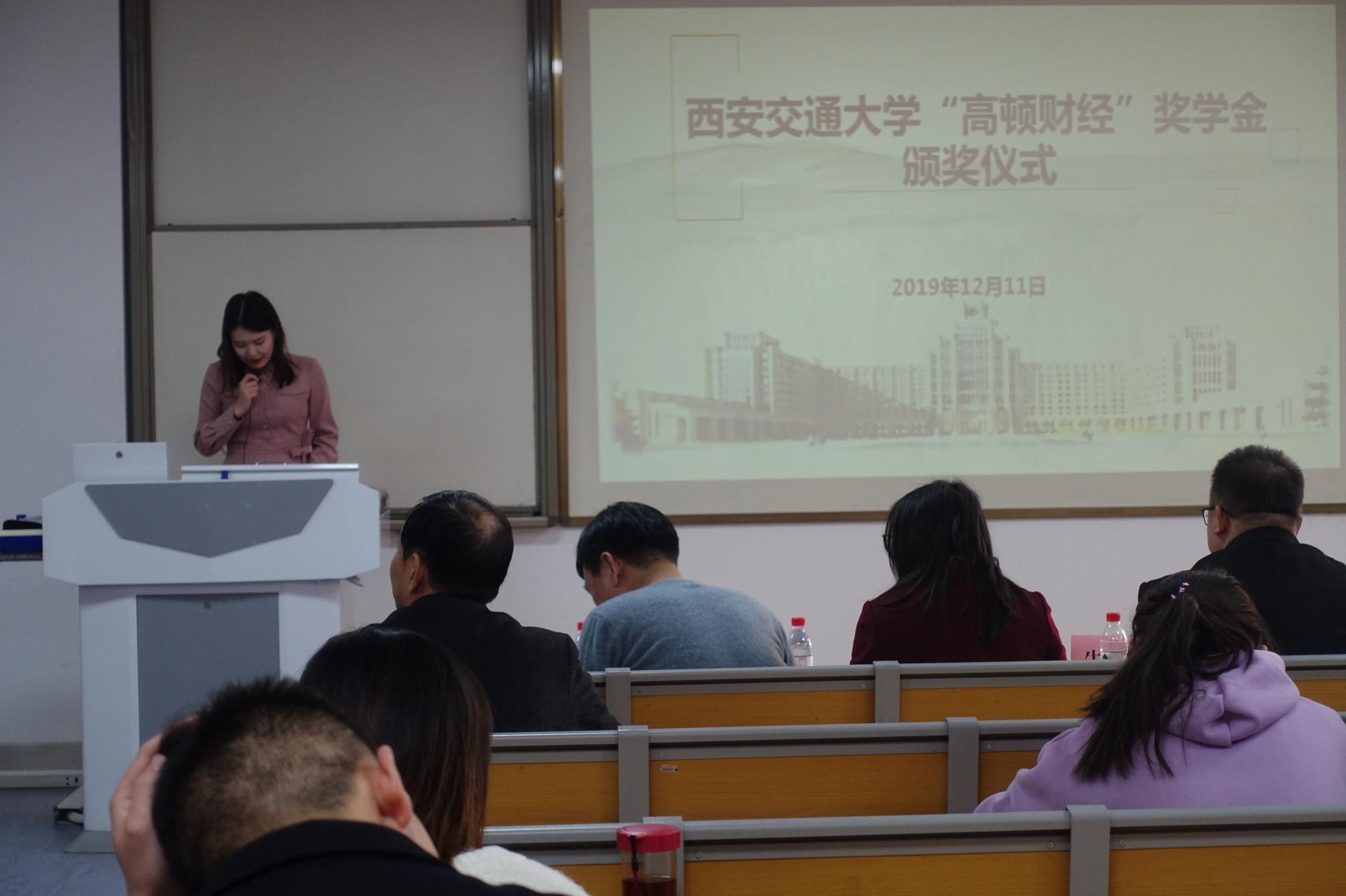 12月11日下午,2019年西安交通大学 “高顿财经”奖学金颁奖仪式在财经东配二楼举行。高顿教育集团领导、经金老虎游戏机