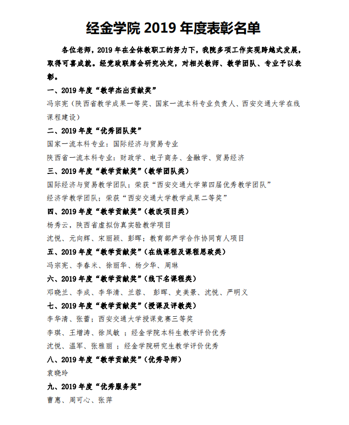 2019年度表彰决定》。此次表彰共九个奖项,分别为:教学杰出贡献奖、优秀团队奖、教学团队类教学贡献奖、教改项目类教学贡献奖、在线课程及课程思政类教学贡献奖、线下名课程类教学贡献奖、授课及评教类教学贡献奖、优秀导师类教学贡献奖、优秀服务奖,共表彰7个团队、31人次。获奖教师代表李华清老师向大家分享了个人教学经验,表示在日后工作中将继续发挥在教学工作上的优势,发挥长处补齐短板,为老虎游戏机