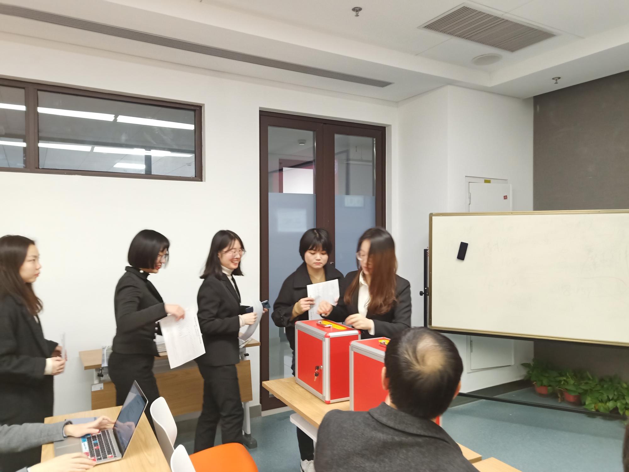 按照团委要求和大会议程,首先兼职辅导员李昊东同学领学了《中华全国学生联合会章程》和《西安交通大学第十次研究生代表大会选举办法(草案)》,之后大会根据无记名投票选举了姜圣韵、杨婷婷和长孙思凡三位同学成为了经金老虎游戏机