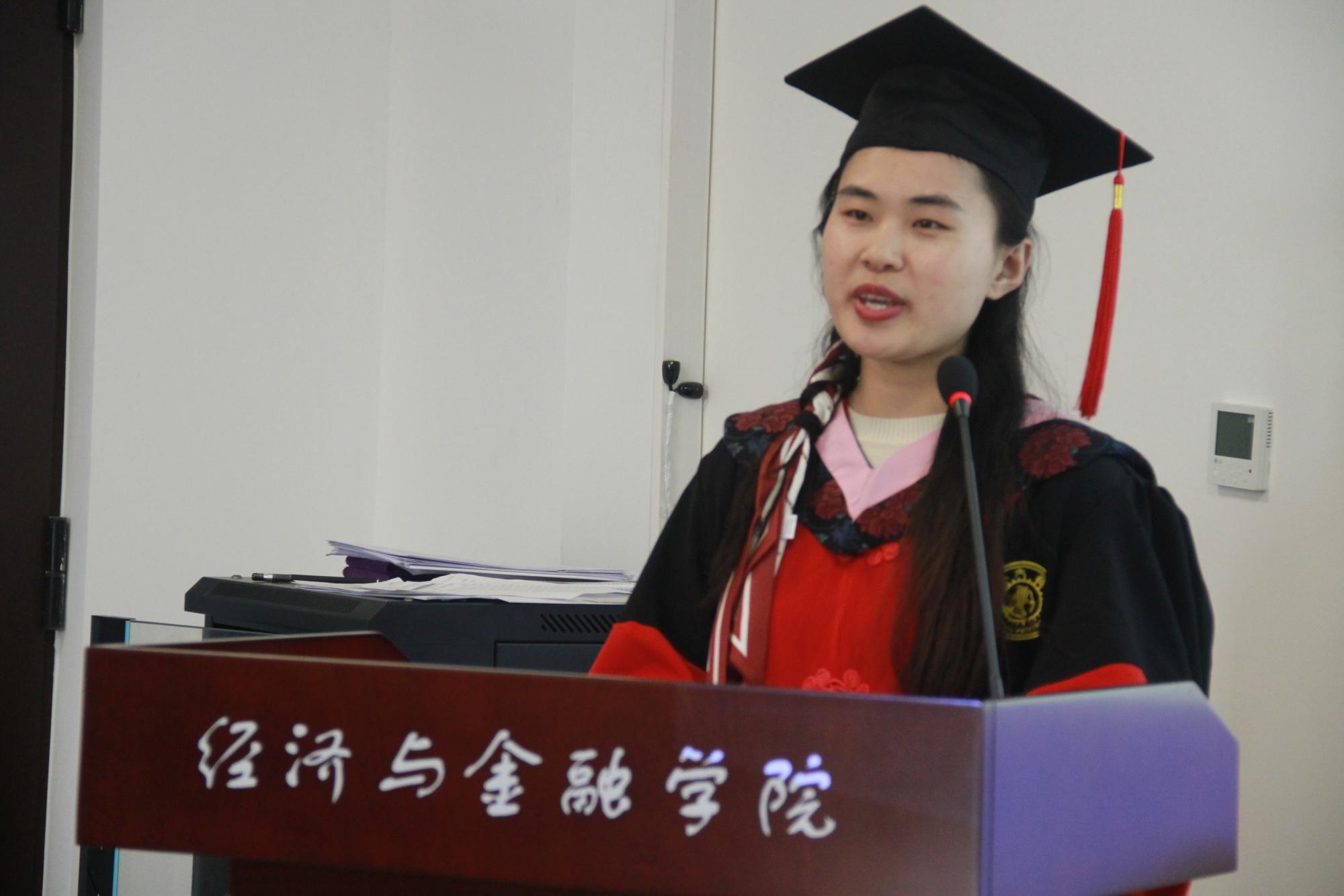 2015级博士生侯玉琳代表春季研究生毕业生发言。她向父母、老师、母校表示了由衷感谢,并细数了在经金老虎游戏机