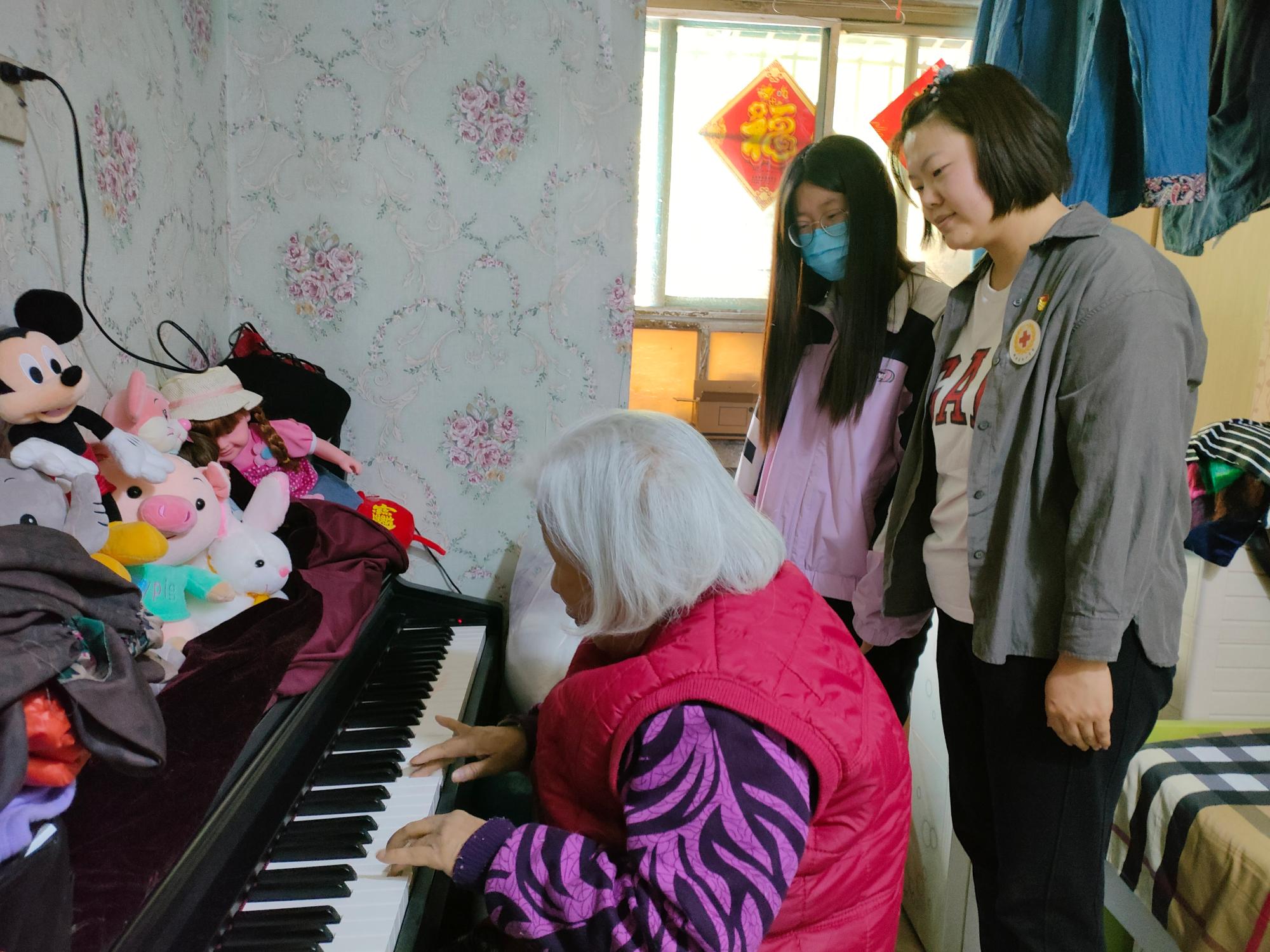 在与爷爷奶奶的交谈过程中,一位盲人奶奶深受感动,高兴地与支部成员共同即兴伴奏唱响西安交通大学校歌《为世界之光》;一位40年党龄的老党员米奶奶亲切热情地给支部成员们讲自己的入党经历与党史,向年轻人宣传积极开朗的生活态度并且赞扬国家补贴政策,支部成员们收获颇多。