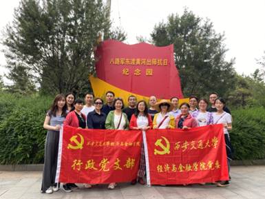 在八路军东渡黄河出师抗日教育基地,全体党员先后瞻仰了东渡黄河实物纪念展厅和纪念碑,一份份详实的史实资料、一张张泛黄的报纸和照片、一件件红色革命历史遗物仿佛将大家带回到了那段激情燃烧的烽火岁月,大家的思绪回到了那峥嵘的革命岁月,重现了在民族危难时期,八路军总部从芝川东渡黄河,奔赴抗日前线,英勇杀敌的英雄壮举,党员们纷纷表达了对革命烈士的敬仰之情。