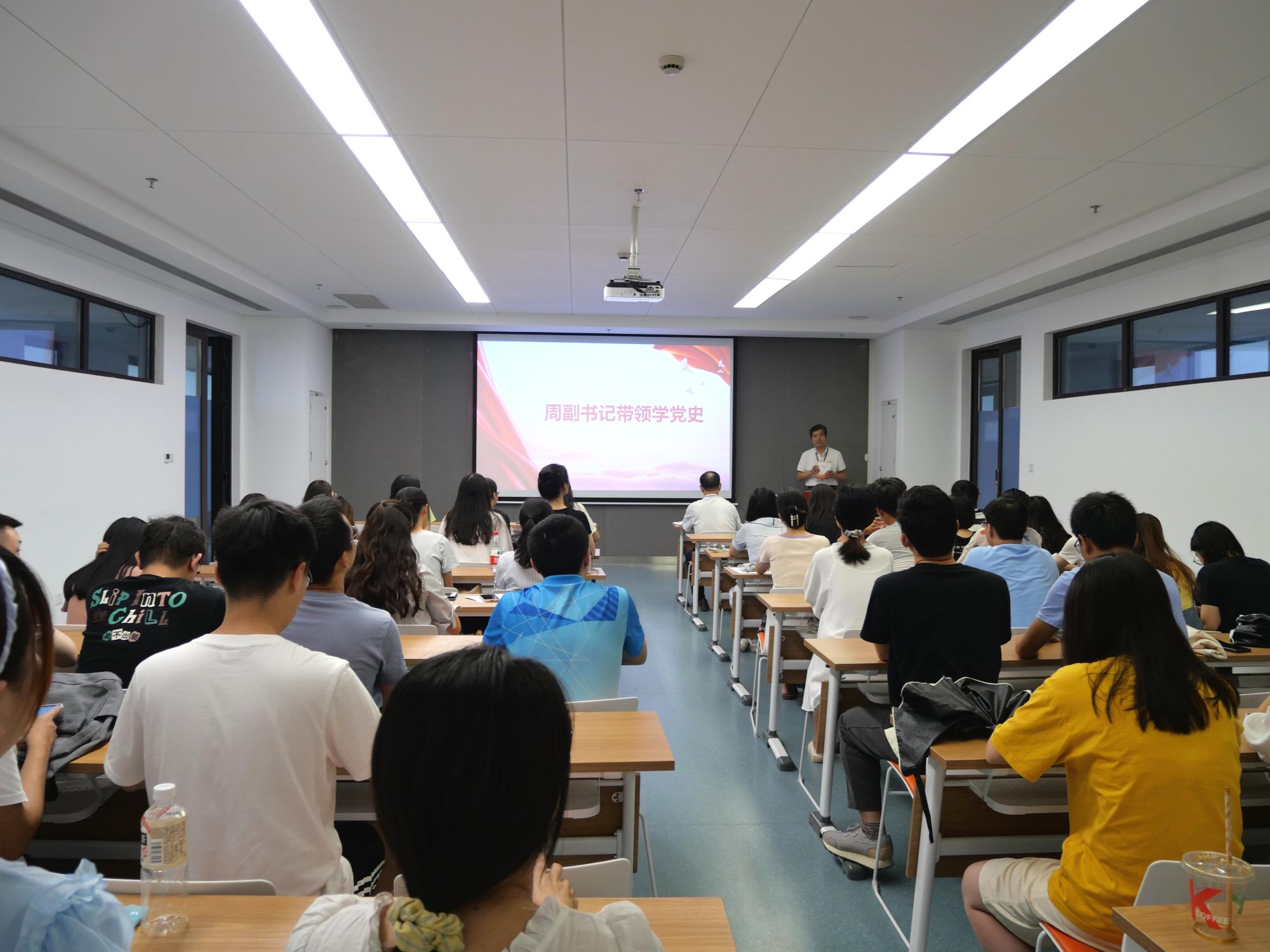 周建伦副书记为新党员带来一场生动的党史领学。周副书记以新冠疫情中国共产党领导下的社会主义制度所展示出的优越性开始,带领大家一起重温了中国共产党产生的历史背景,并以年鉴的形式回顾党的历次代表大会及其重要内容,增强了大家对中国共产党党史知识的了解。