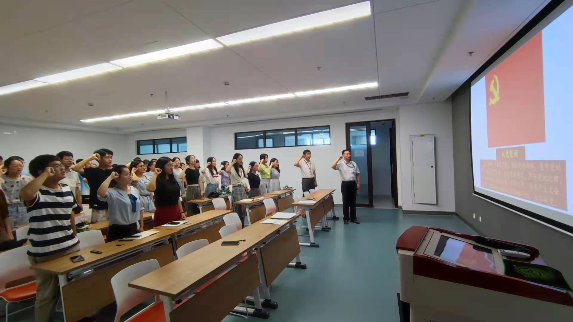 于6月30日在涵英楼8088室举行新发展党员入党宣誓仪式。院党委副书记周建伦参加宣誓仪式,王平老师主持。