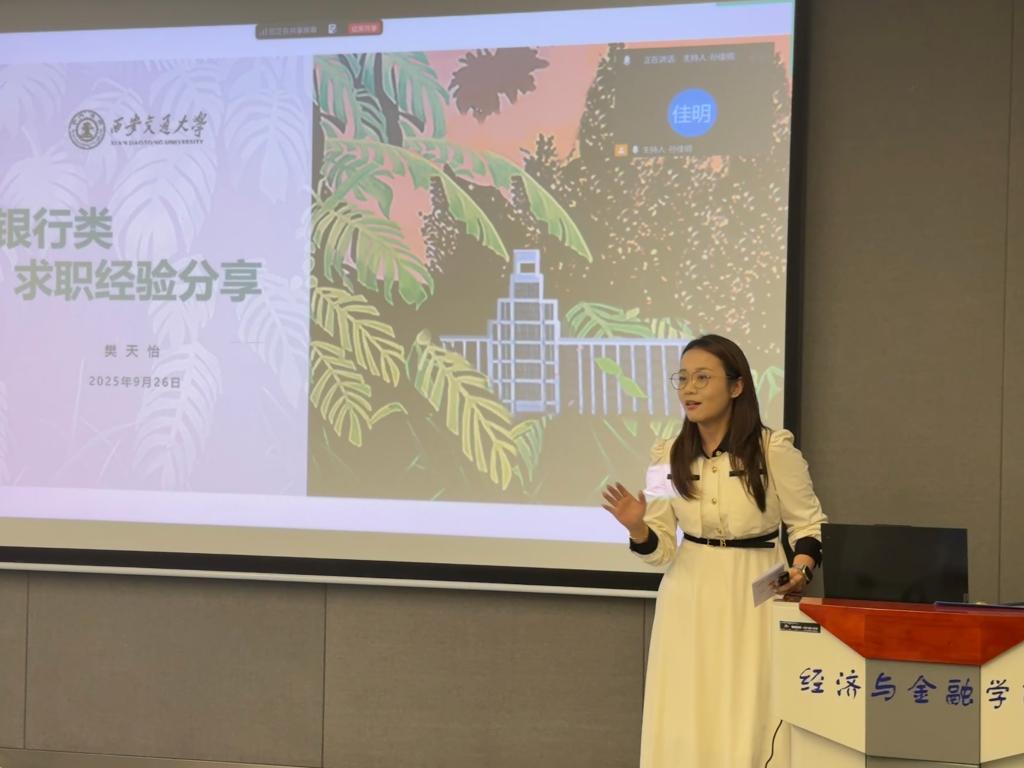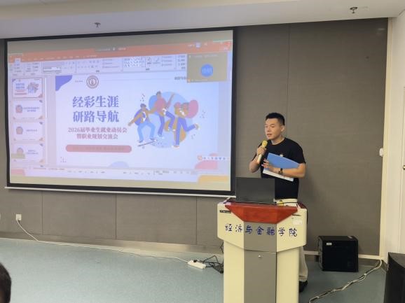 为给不同职业选择的同学提供针对性指导,会议特别邀请三位2025届优秀院友代表从选调生、银行、企业三个热门就业方向分享实战经验,用“过来人”的经历为学弟学妹们“避坑指路”。2025届应用统计硕士徐昕,凭借扎实准备成功上岸陕西专项选调。她结合自身备考经历,讲解选调生报考条件、备考时间规划、岗位选择与学习建议等,鼓励想要参加选调的同学提前规划、认真备考。就职于政策性银行的2025届应用经济学硕士樊天怡,分享银行备考经历,强调个人简历制作中突出岗位适配性的技巧,并针对“多线布局”“心态调整”等方面提出实用方案举措。2025届金融硕士张格格,成功入职大型企业财经岗,她从“简历优化、实习积累、职业适应”三个维度分享经验,并强调专业能力与沟通能力在求职中的重要性。